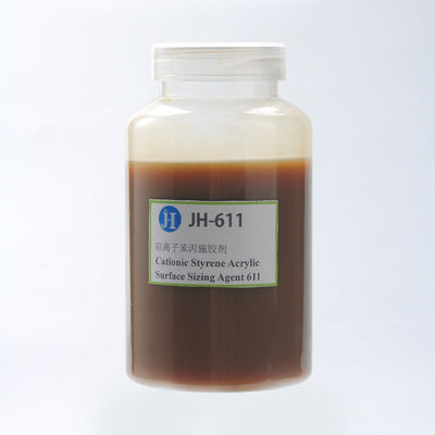 JH-611, stiren, akrilat ve özel koruyucu kolloidlerden oluşan SAE tipi katyonik yüzey haşıl maddesidir.Dış kabuk, suyun kağıda nüfuz etmesini önleyen sürekli bir film oluşturmak için kağıt lifleri ile yüzey boyutlandırma ajanı arasındaki bağlanmayı artırabilen katyonik koruyucu bir kabuktur.Kağıt üzerinde, özellikle iç boyutlandırmasız (emülsifiye reçine) orta kağıt üzerinde düşük geçirgenliğe ve yüksek boyutlandırma etkisine sahiptir.Aynı zamanda mükemmel stabilite, örneğin termo-stabilite, mekanik stabilite ve depolama stabilitesi gösterir.JH-611 hem asidik hem de nötr boyutlandırma koşulları altında çalışır ve hem oksitlenmiş nişasta hem de enzimle dönüştürülmüş nişasta ile uyumludur.Ayrıca, JH-611'in boyutlandırma performansı, alüminyum varlığında geliştirilebilir.