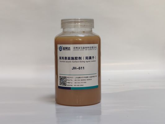 JINHAODA JH-611 Yüzey Boyutlandırma Maddesi, kağıdın yüzey boyutlandırması için özel olarak tasarlanmış katyonik stiren akrilik bir boyutlandırma maddesidir.İyi uyumluluk, düşük viskozite, güçlü afinite ve iyi su direnci özelliklerine sahiptir.Kağıdın ıslak mukavemetini ve su direncini artırabilir.