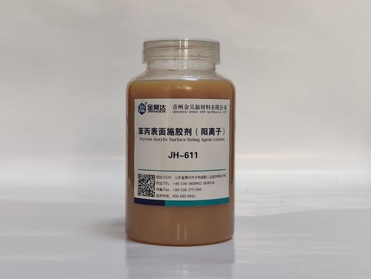 JINHAODA JH-611 Yüzey Boyutlandırma Maddesi, kağıdın yüzey boyutlandırması için özel olarak tasarlanmış katyonik stiren akrilik bir boyutlandırma maddesidir.İyi uyumluluk, düşük viskozite, güçlü afinite ve iyi su direnci özelliklerine sahiptir.Kağıdın ıslak mukavemetini ve su direncini artırabilir.
